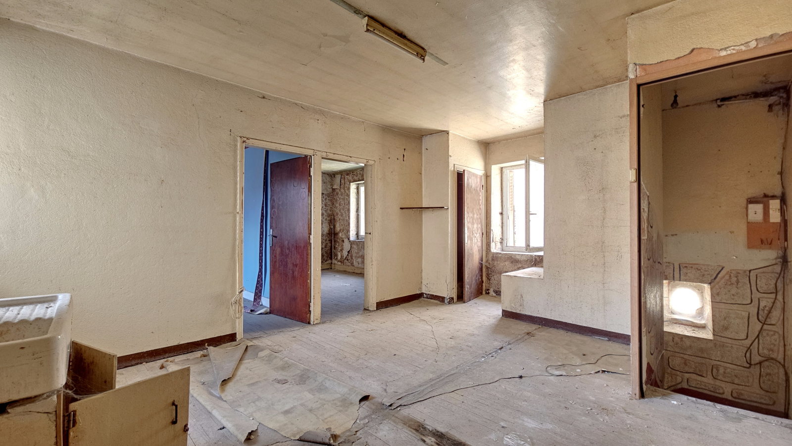 Exclusivité à Blanzat, maison de bourg de 75 m² à rénover, beaucoup de possibilités pour ce bien sur deux niveaux, toit refait recemment, double vitage. Cave de 37 m² en sous-sol.
